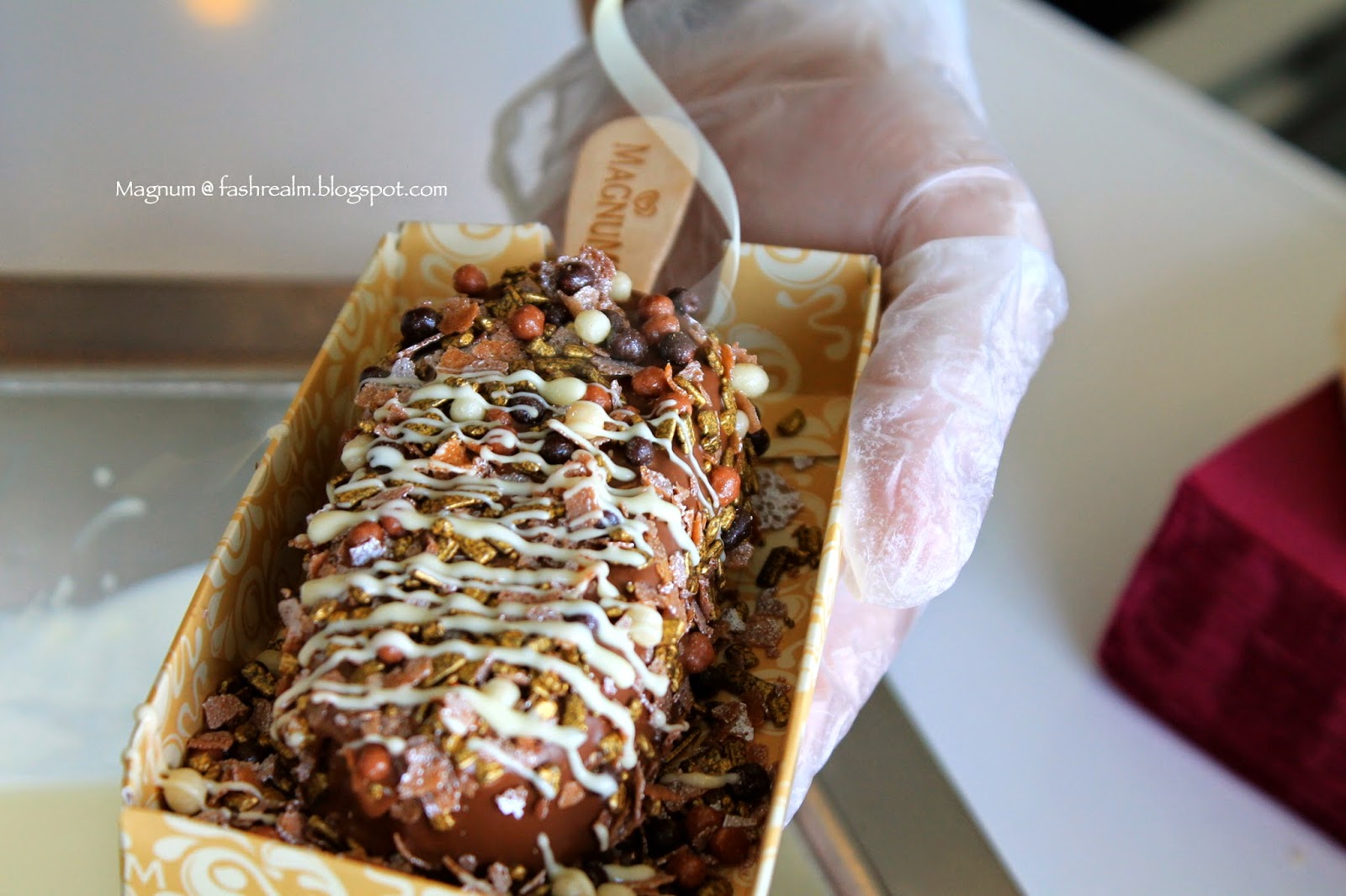 The first Magnum Ice-cream which Fash Realm chose was Milk Chocolate flavor as the exterior crackling chocolate with Chocolate Balls, Gold Nuggets & Pixie Dust as the decorative toppings.